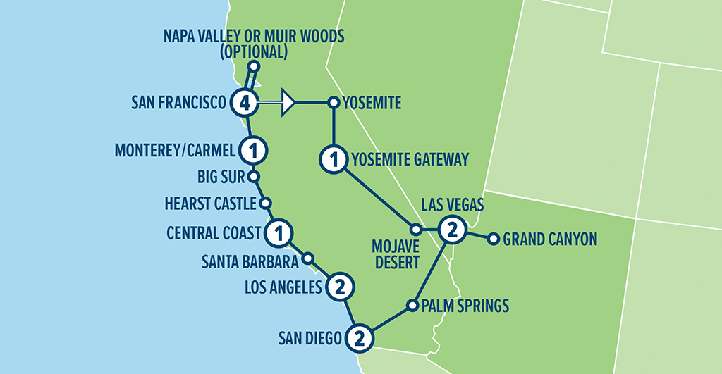 Begins in San Francisco and ends in San Francisco